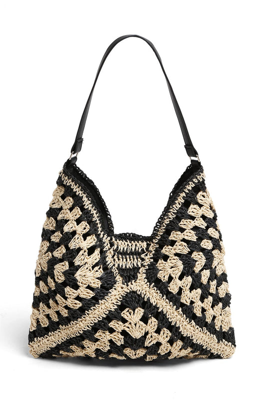Patterned Straw Hobo Bag