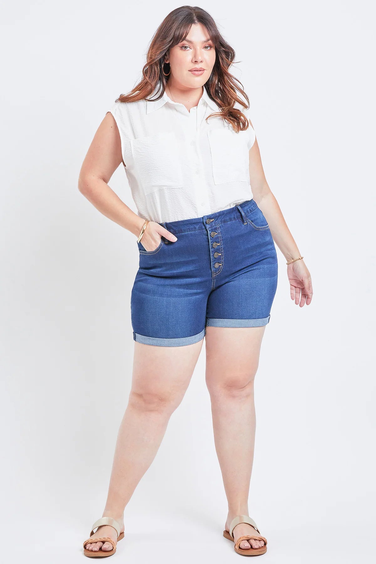 Button-Fly Cuffed Shorts