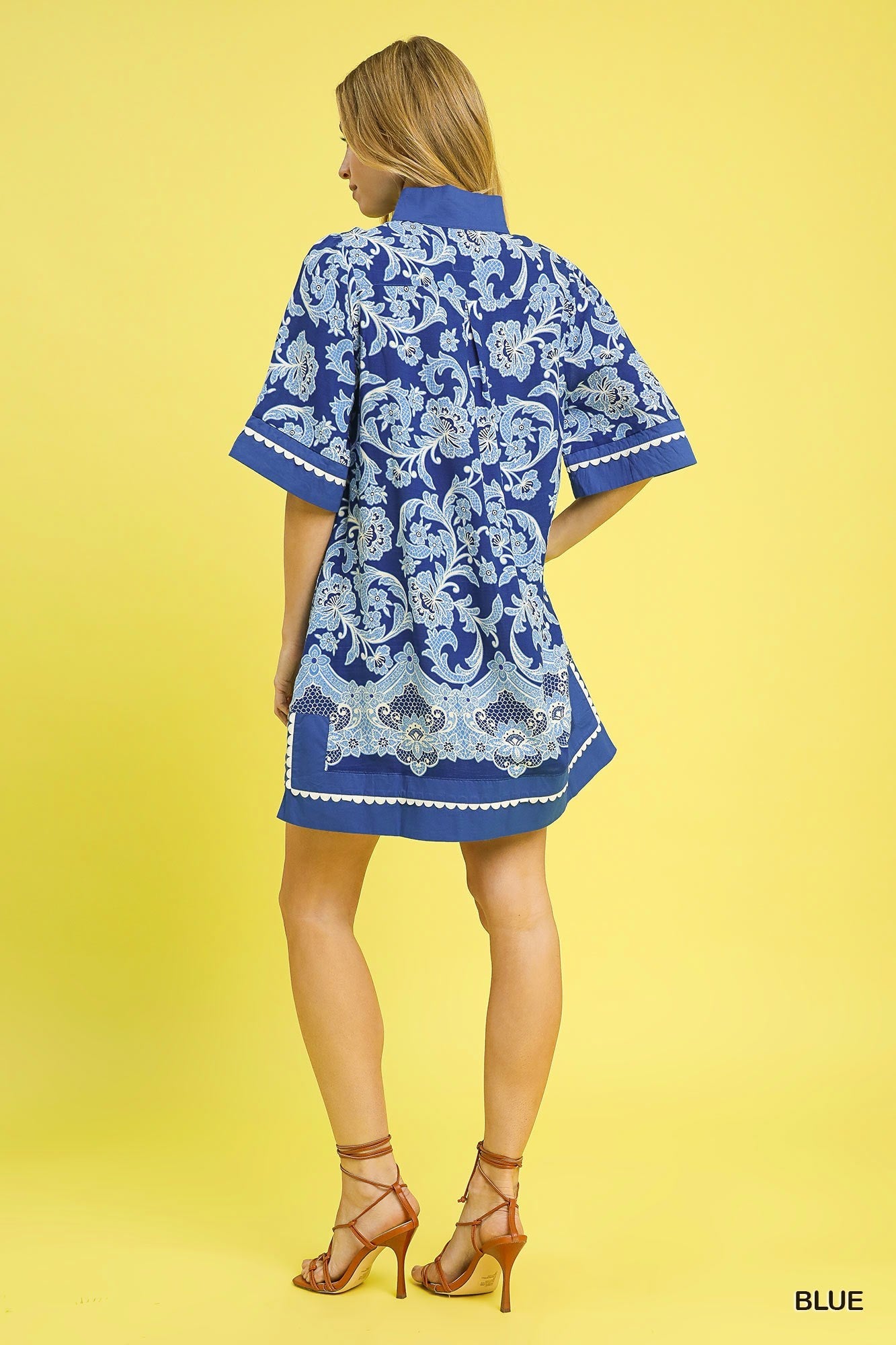 Scallop Trim Printed Tunic Dress